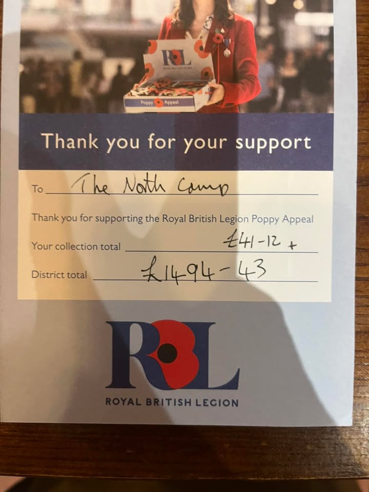 Wow we was not expecting that. Remembrance Sunday 2025 £1535.55 raised North Camp @ its finest. Thank you everyone